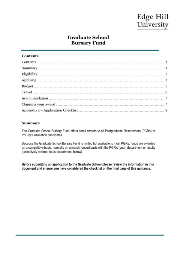 Graduate School Bursary Fund Guidance (RO-GRA-07G)