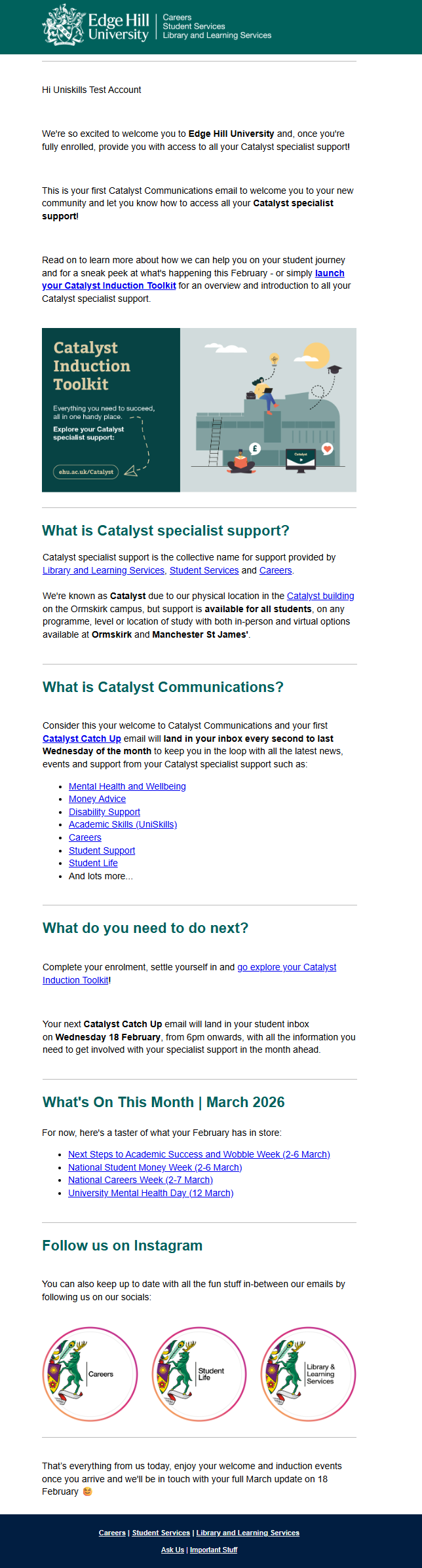 Explore the latest emails circulated by Catalyst Communications to Edge Hill Students.