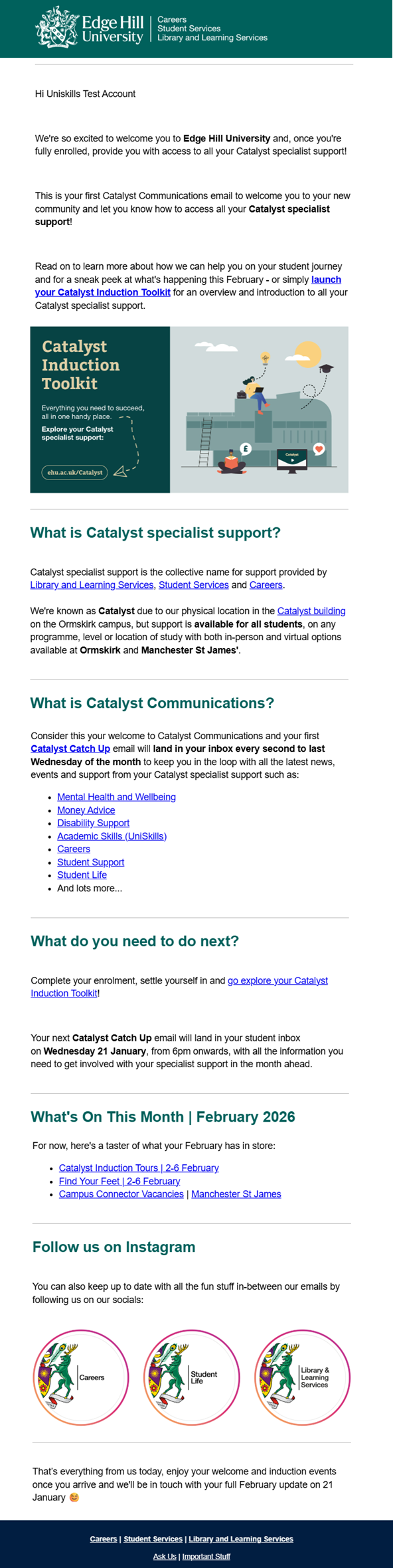 Explore the latest emails circulated by Catalyst Communications to Edge Hill Students.