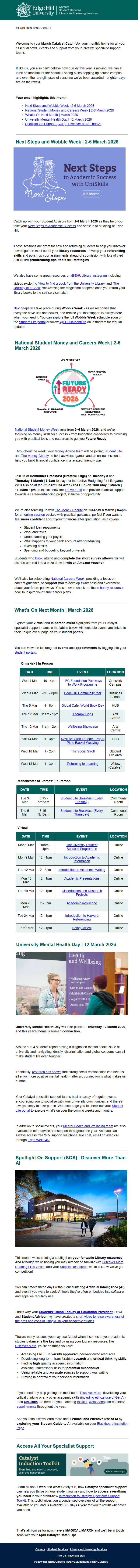 Explore the latest emails circulated by Catalyst Communications to Edge Hill Students.