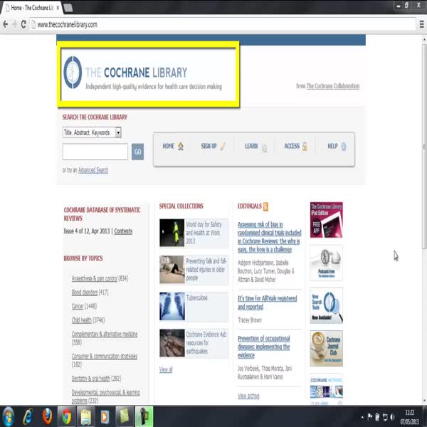 A quick and clear guide to conducting an effective search in The Cochrane Library.