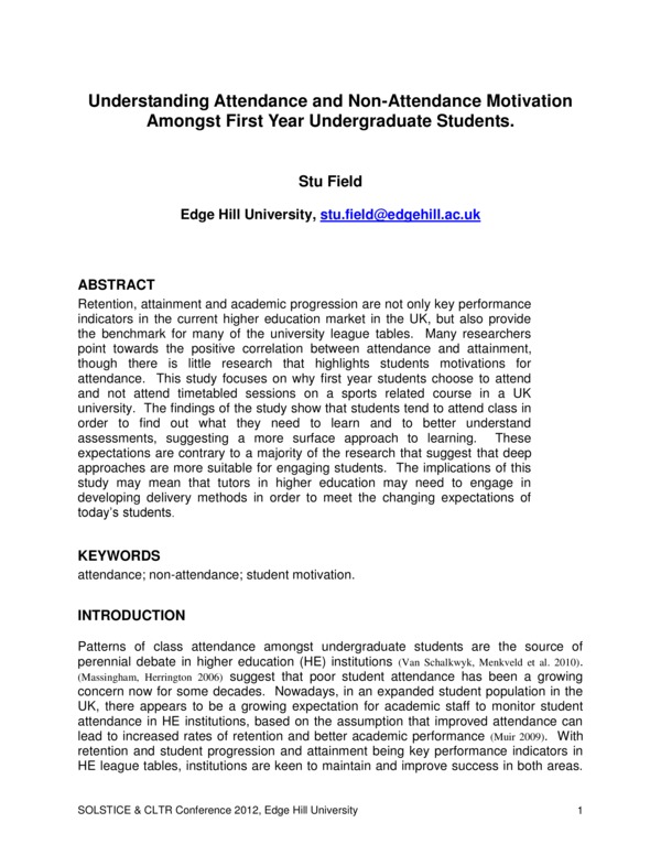 A small study that looked at the motivations for students attendance and non-attendance at timetabled sessions in higher education.