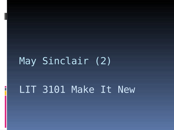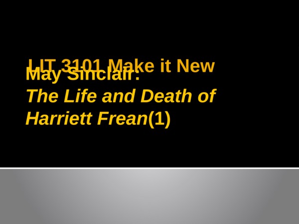 Powerpoint slides for the second lecture on May Sinclair's 1922 novel "Harriett Frean".