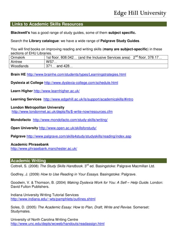 Links to Academic Skills Resources