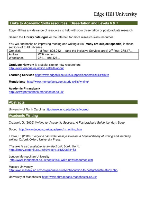 Links to Academic Skills Resources: Dissertation and Levels 6 & 7