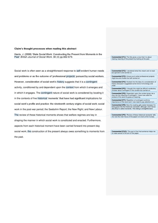 Annotated text modelling active reading strategies.