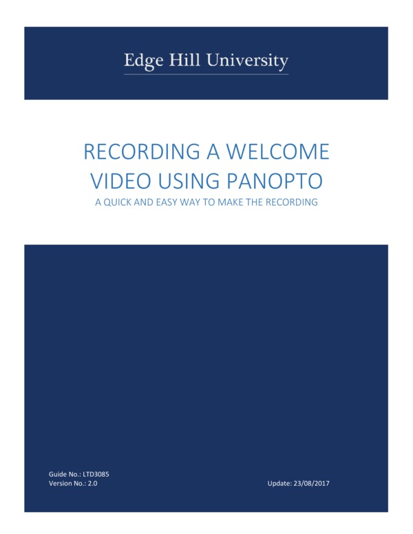 LTD3085: Recording a Welcome Video Using Panopto