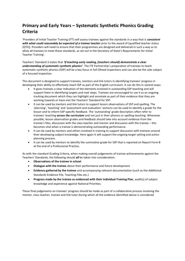 A document to support trainees and trainers across the Partnership in assessing, tracking and developing trainees’ knowledge, skills and understanding around Systematic Synthetic Phonics.