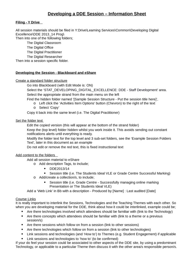 OUT OF DATE - FOR REF ONLY - Developing a DDE Session - Information Sheet (2013-14)